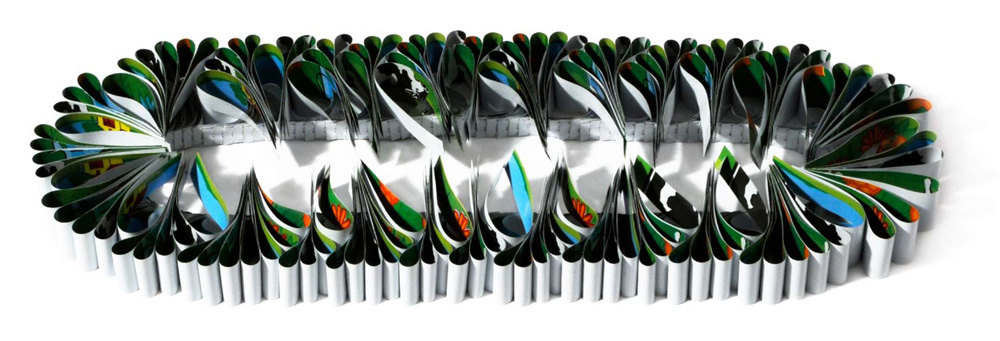 Die FARBE übernimmt in diesem Transformationsprozess einen wesentlichen Anteil. Sie entfremdet, sie konkurriert spannungsreich mit der Form, sie bereitet dem Betrachter aufgrund der heiteren Farbpalette vergnügliche Irritationen. Reihungen und Faltungen sind charakteristische Merkmale Ihrer Arbeiten - Ordnung und Klarheit sind ihre Leitprinzipien.